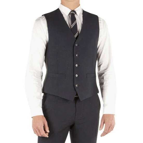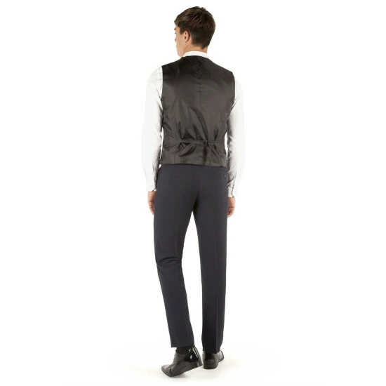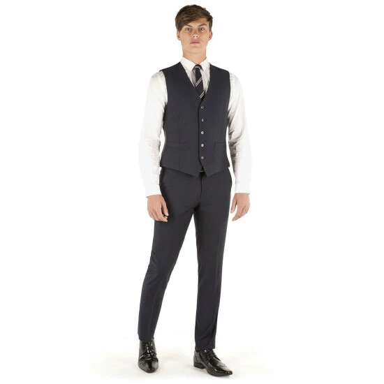 Micro Design Slim Fit Waistcoat by Limehaus. This slim fit suit has been crafted using a subtle micro design cloth that will easily see you from season to season. The jacket features a two button fastening, slim notch lapels, slanted side pockets, side vents and four button cuffs. Styling details include a polka dot body lining which also features as a pull out pocket handkerchief and on the under collar alongside a tonal navy collar melton. Worn as a three piece this really is the ideal suit for work or play.