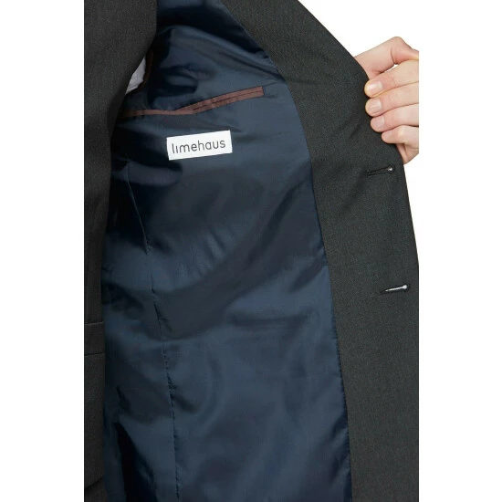 65% Polyester 35% Viscose. Dry Clean Only. Model wears a size 40R.