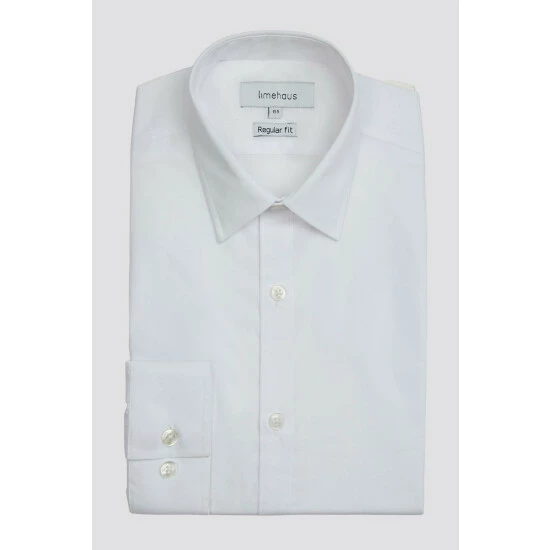 Poplin Regular Fit Shirt by Limehaus. This Limehaus slim-fitting shirt features a poplin fabric with a forward-point collar and single cuffs – it’s the perfect shirt for any occasion.