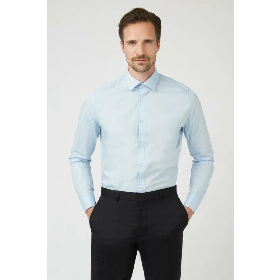 Poplin Shirt by Limehaus. This Limehaus slim-fitting shirt features a poplin fabric with a forward-point collar and double cuffs to accessorise with cufflinks – it’s the perfect shirt for any occasion.