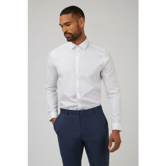 Poplin Slim Fit Shirt by Limehaus. This Limehaus slim-fitting shirt features a poplin fabric with a cutaway collar and single cuffs – it’s the perfect shirt for any occasion.