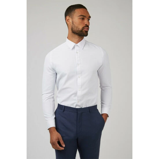 Textured Slim Fit Shirt by Limehaus. This Limehaus slim-fitting shirt features a textured fabric with a forward-point collar and single cuffs – it’s the perfect shirt for any occasion.
