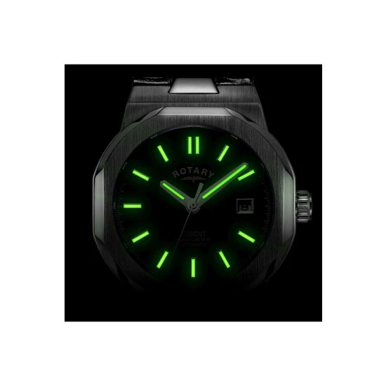 Primary Material : Stainless Steel | Case depth approx : 11.65mm | Case width approx : 40.00mm | Case shape : Other | Strap type : Leather strap | Strap colour : Black | Clasp type : Strap buckle | Dial colour : Black | Glass : Sapphire | Movement : Automatic | Water Resistance : 100 metres | Guarantee : 2 years
