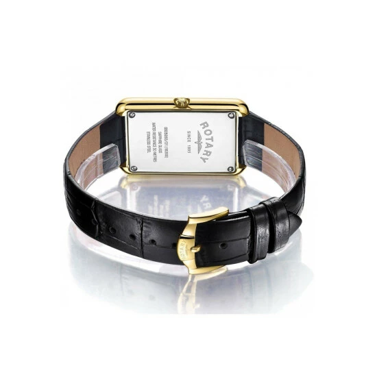 Battery Type : silver oxide | Primary Material : Stainless Steel | Case depth approx : 7.00mm | Case width approx : 28.00mm | Case shape : Rectangle | Strap type : Leather strap | Strap colour : Black | Clasp type : Strap buckle | Dial colour : White | Glass : Sapphire | Movement : Quartz | Movement Source : Japan | Water Resistance : 50 metres | Includes date function | Guarantee : 2 years