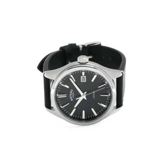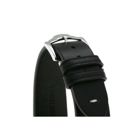 Battery Type : silver oxide | Primary Material : Stainless Steel | Case depth approx : 9.00mm | Case width approx : 40.00mm | Case shape : Circle | Strap type : Leather strap | Strap colour : Black | Clasp type : Strap buckle | Dial colour : Black | Glass : Sapphire | Movement : Quartz | Movement Source : Japan | Water Resistance : 50 metres | Includes date function | Guarantee : 2 years