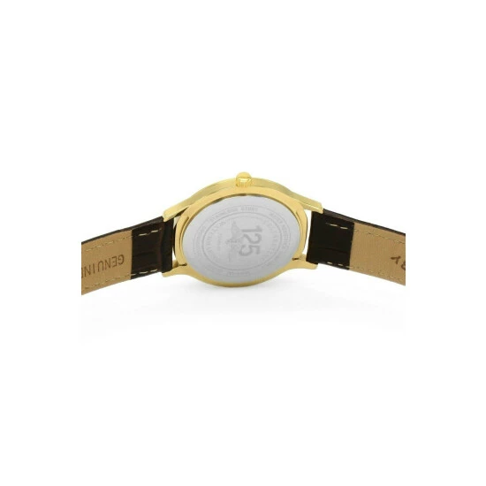 Primary Material : Plated Stainless Steel | Case depth approx : 8.00mm | Case width approx : 36.00mm | Case shape : Circle | Strap type : Leather strap | Strap colour : Brown | Clasp type : Strap buckle | Dial colour : Champagne | Glass : Mineral | Movement : Quartz | Movement Source : Japan | Water Resistance : 50 metres | Includes date function | Guarantee : 2 years