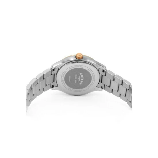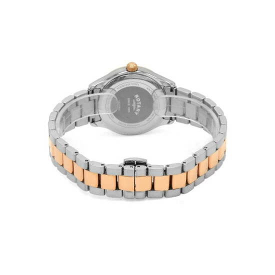 Primary Material : Plated Stainless Steel | Case depth approx : 7.70mm | Case width approx : 32.00mm | Case shape : Circle | Strap type : Metal bracelet | Strap colour : Two-Tone Rose | Dial colour : Silver | Glass : Sapphire | Movement : Quartz | Movement Source : Japan | Water Resistance : 50 metres | Includes date function | Guarantee : 2 years