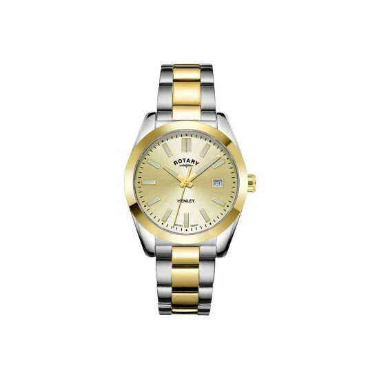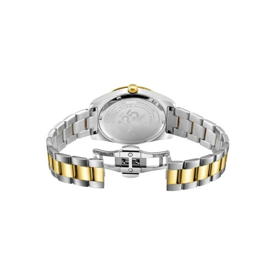 Primary Material : Gold Plated Stainless Steel | Case depth approx : 10.00mm | Case width approx : 36.00mm | Case shape : Circle | Strap type : Metal bracelet | Strap colour : Two-Tone Gold | Clasp type : Deployment | Dial colour : Champagne | Glass : Sapphire | Movement : Quartz | Water Resistance : 100 metres | Guarantee : 2 years