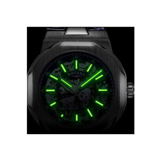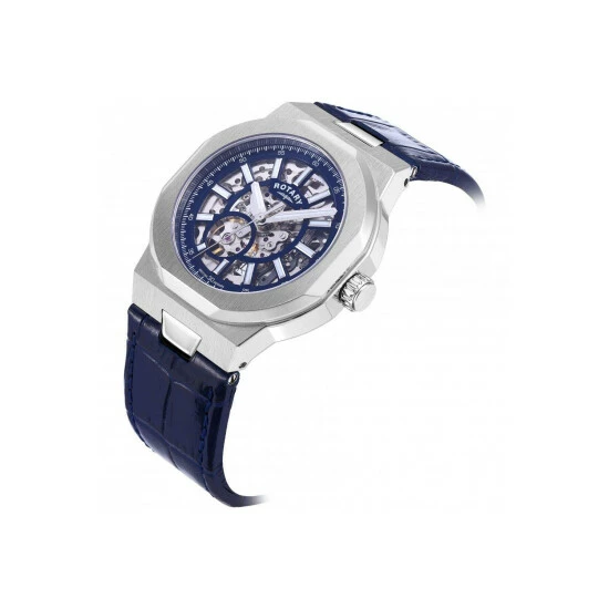 Primary Material : Stainless Steel | Case depth approx : 11.65mm | Case width approx : 40.00mm | Case shape : Other | Strap type : Leather strap | Strap colour : Blue | Clasp type : Strap buckle | Dial colour : Skeleton | Glass : Sapphire | Movement : Automatic | Water Resistance : 100 metres | Guarantee : 2 years
