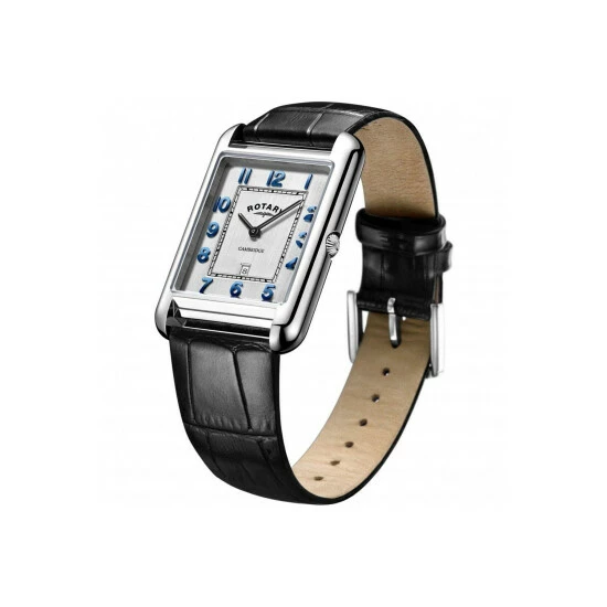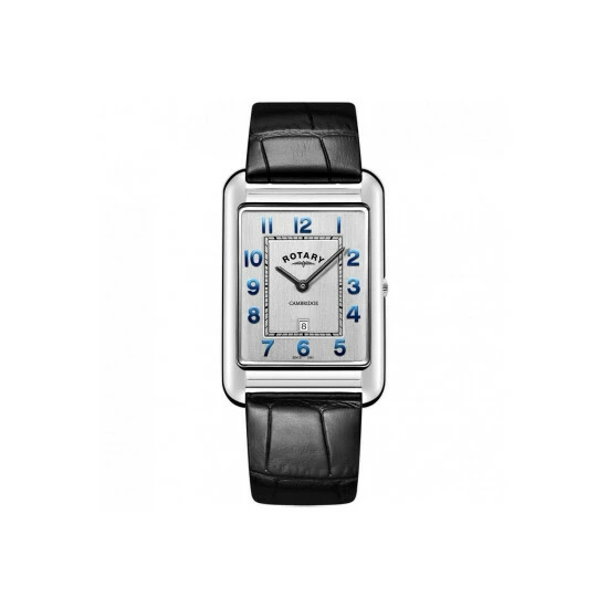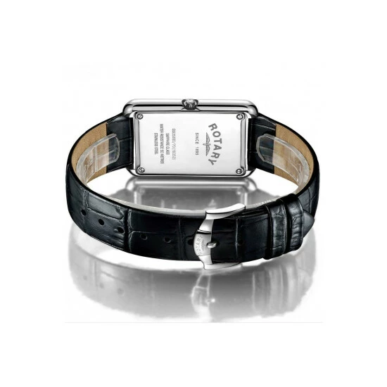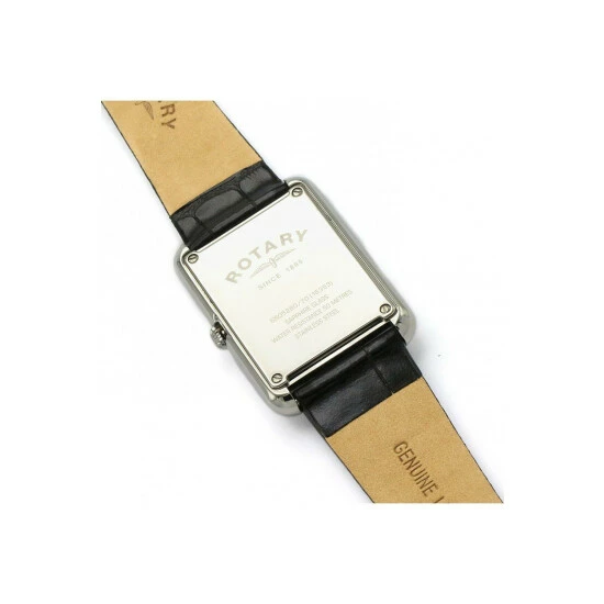 Primary Material : Stainless Steel | Case depth approx : 7.00mm | Case width approx : 28.50mm | Case shape : Rectangle | Strap type : Leather strap | Strap colour : Black | Clasp type : Strap buckle | Dial colour : Silver | Glass : Sapphire | Movement : Quartz | Movement Source : Japan | Water Resistance : 50 metres | Includes date function | Guarantee : 2 years