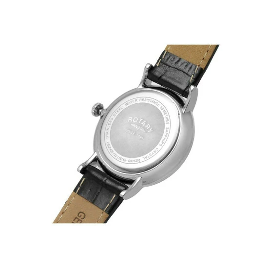 Primary Material : Stainless Steel | Case depth approx : 7.20mm | Case width approx : 37.00mm | Case shape : Circle | Strap type : Leather strap | Strap colour : Black | Clasp type : Strap buckle | Dial colour : Silver | Glass : Sapphire | Movement : Quartz | Movement Source : Japan | Water Resistance : 100 metres | Includes date function | Guarantee : 2 Years